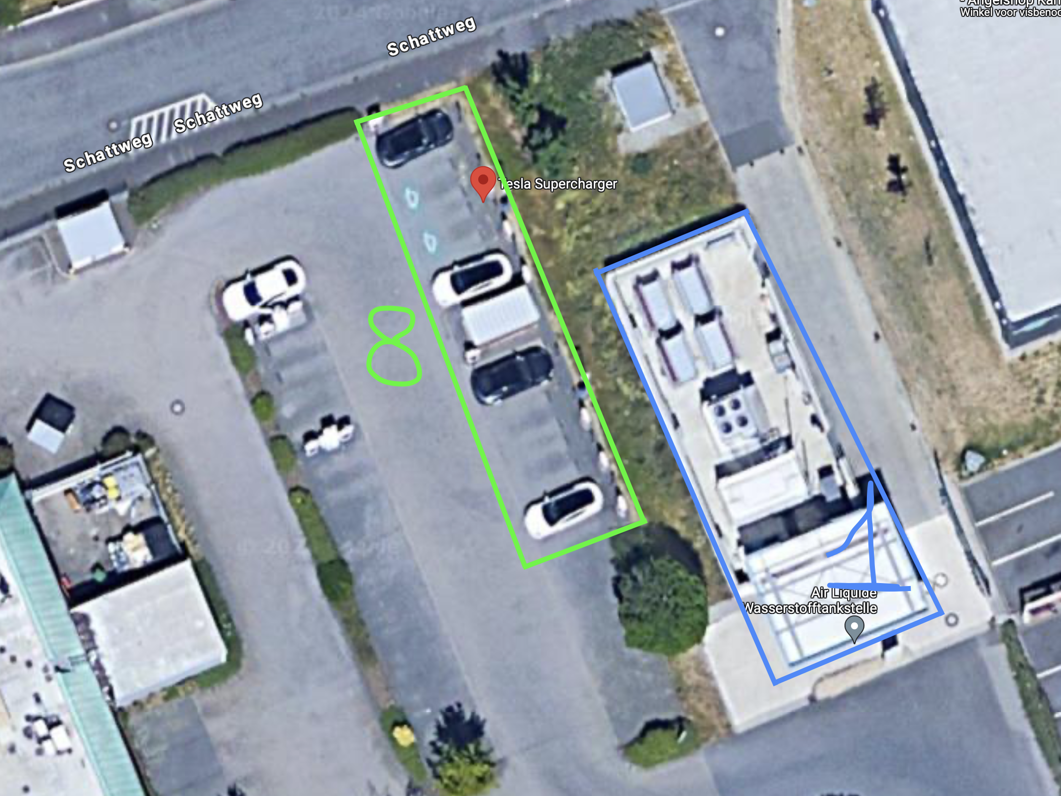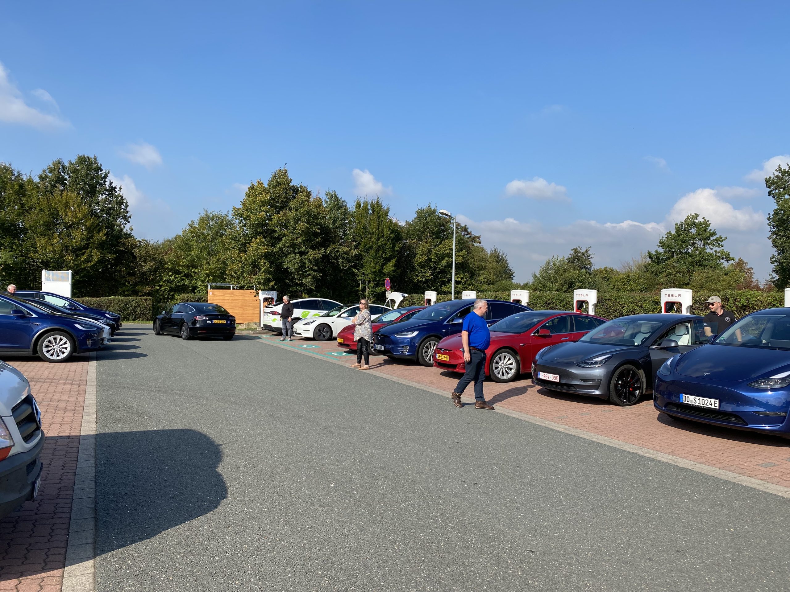 De dag nadien, op vrijdagmorgen 8 oktober, waren we er vroeg bij want John, Hans en ikzelf, hadden samen een rit van 700 kilometer voor de boeg in een Model S met natuurlijk enkele Supercharger-stops. Onze eerste stop was aan de Supercharger in Kamen en daar was iets speciaal. Naast de Supercharger stond immers een station om waterstof te tanken. Er was slechts één tankpunt, maar de bijbehorende installatie was gigantisch, zeker in vergelijking met de Superchargers van Tesla ernaast. Het benodigde oppervlak nodig voor 1 tankpunt voor waterstof is groter dan voor 8 Tesla-Superchargers…