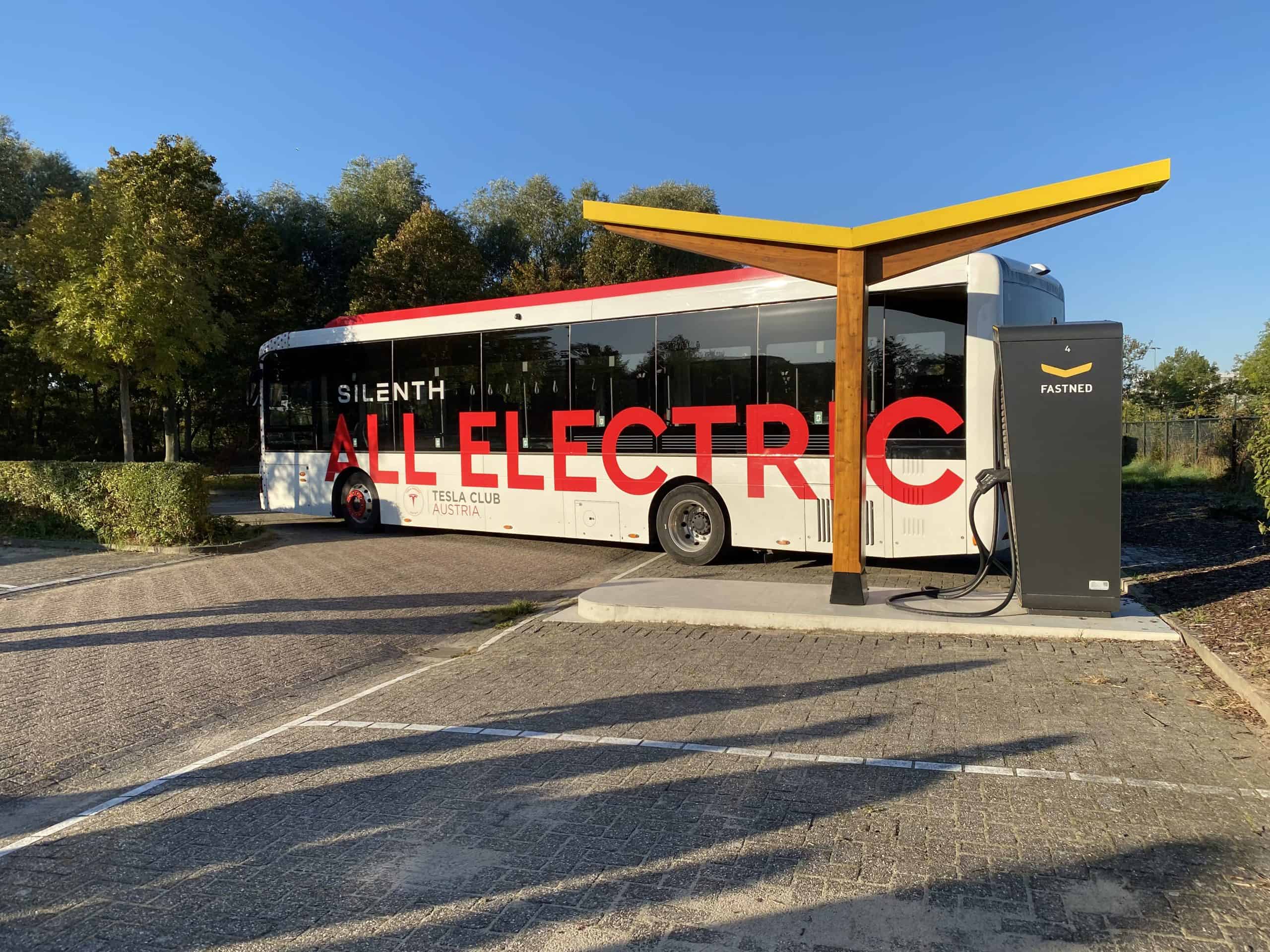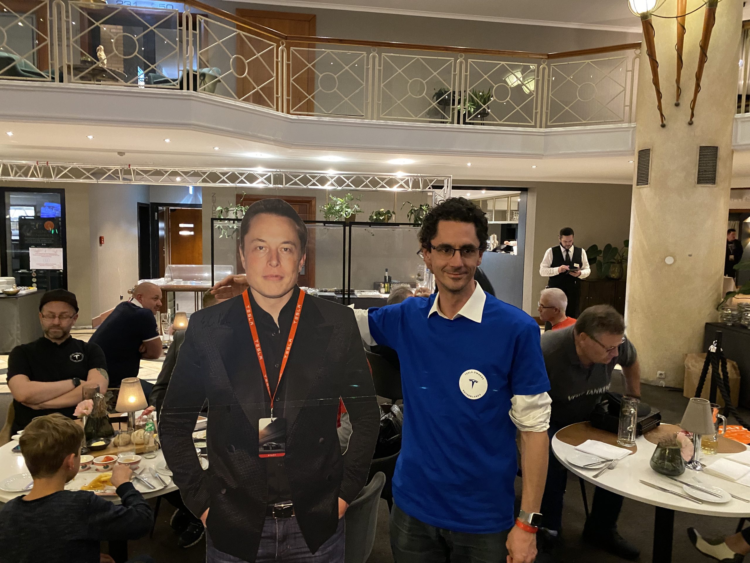 Vrijdagavond was het een leuk en gezellig weerzien met de andere Tesla-clubs en ook Elon heeft ons een bezoek gebracht in het hotel en dat maakte de avond compleet ;o) We kwamen die avond te weten dat de Oostenrijkse Tesla-club met een elektrische bus was gekomen, die buiten het hotel stond op te laden aan twee CCS-aansluitingen. Die bus kon ons ’s morgens tot aan de fabriek brengen, zodat we niet met eigen vervoer moesten gaan. We gingen die avond niet te laat naar bed, want de volgende dag moesten we er vroeg uit.
