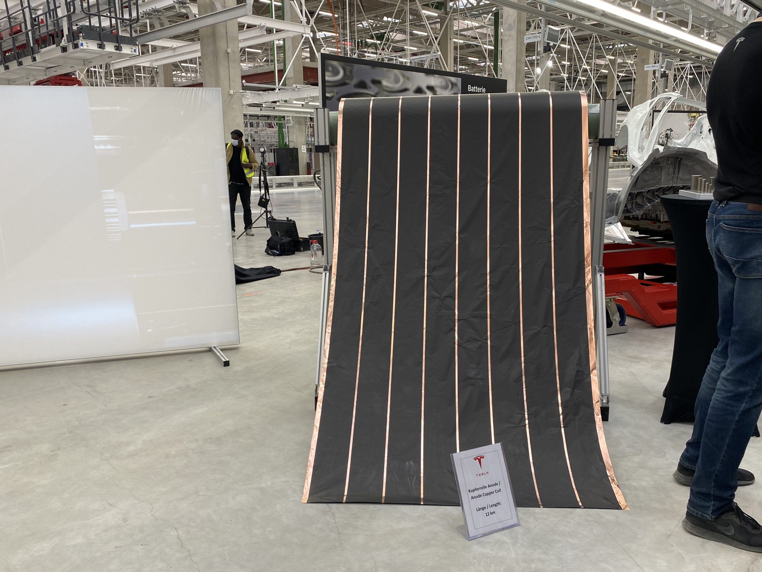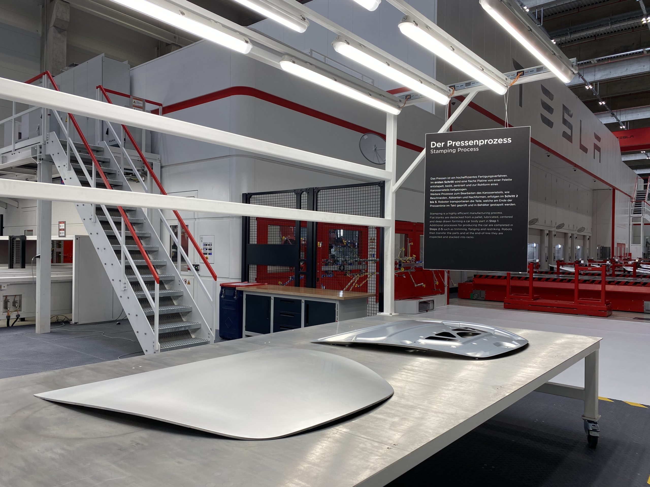 In het eerste deel van de tour zagen we honderden robotten die in harmonie in een soort demonstratiemodus bezig waren en waar vooral onderdelen werden gemonteerd. Zeer mooi om te zien en vooral de snelheid waarmee ze bewegen was erg indrukwekkend. Er stond ook heel wat interessante informatie langs het parcours zoals bijvoorbeeld dat 80% van alle onderdelen aangeleverd zullen worden door Europese leveranciers. Van alle werknemers zullen ze 80% rekruteren in Duitsland terwijl de overige 20% uit 50 andere landen over de hele wereld afkomstig zullen zijn.